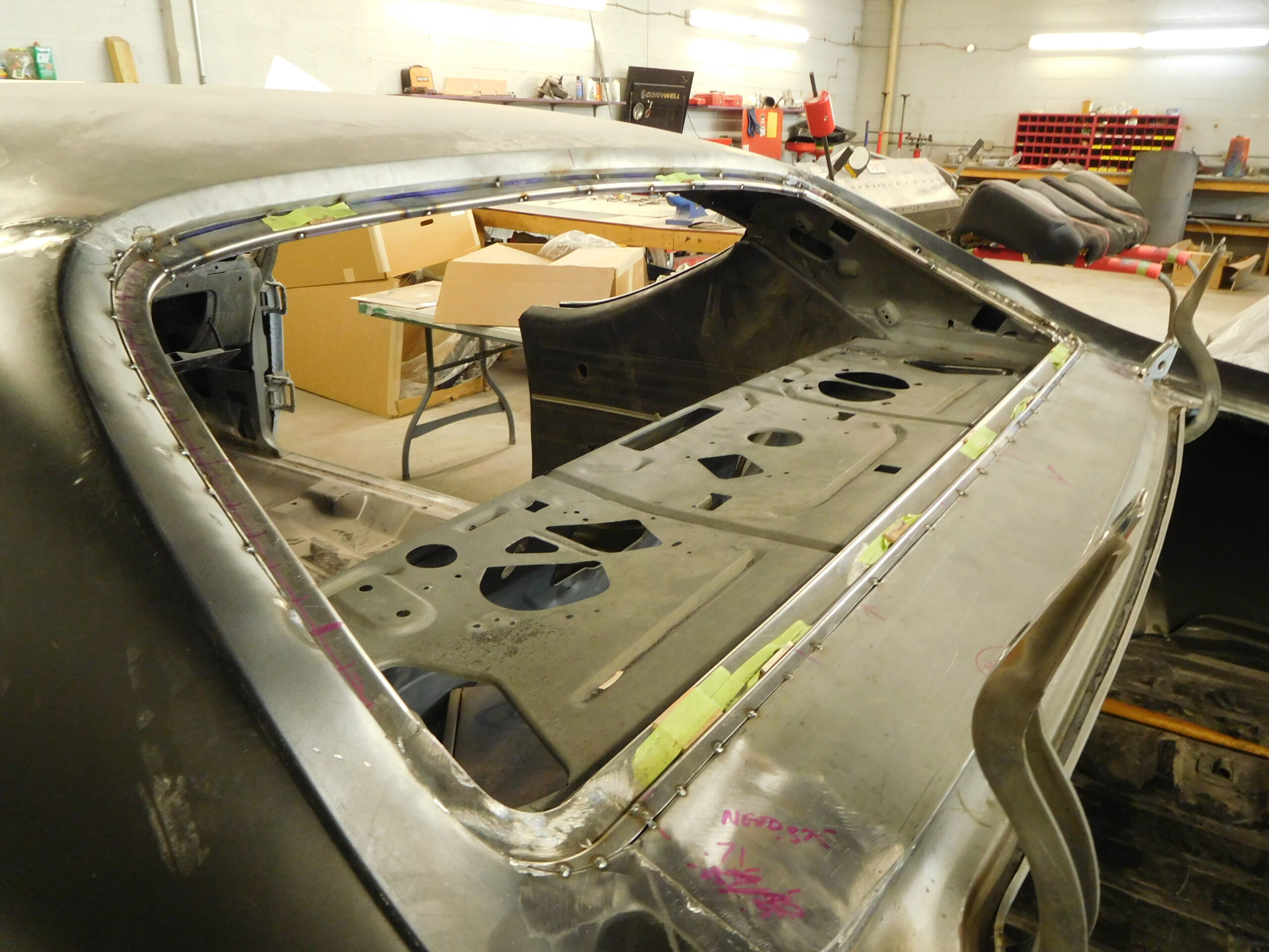 The customer was told that it was ready for paint before he brought this Chevelle to us. After a quick look we realized that it needed much more. We had to send it out for acid dipping and what returned looked like something that happened after someone said “hold my beer, watch this” We have replaced both full quarter panels, deck lid, trunk pan, full floor pan, dash, and cowl. And we still have more to fix. Once again, don’t buy something that is “already done” unless the seller has pictures of the work.